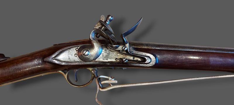 A 1799 Short Land Pattern Brown Bess Musket, engraved W. Ketland complete with bayonet and scabbord and ramrod, 147cms long, barrel 106.5cms long and 195cms long with bayonet. Hammer £1,900