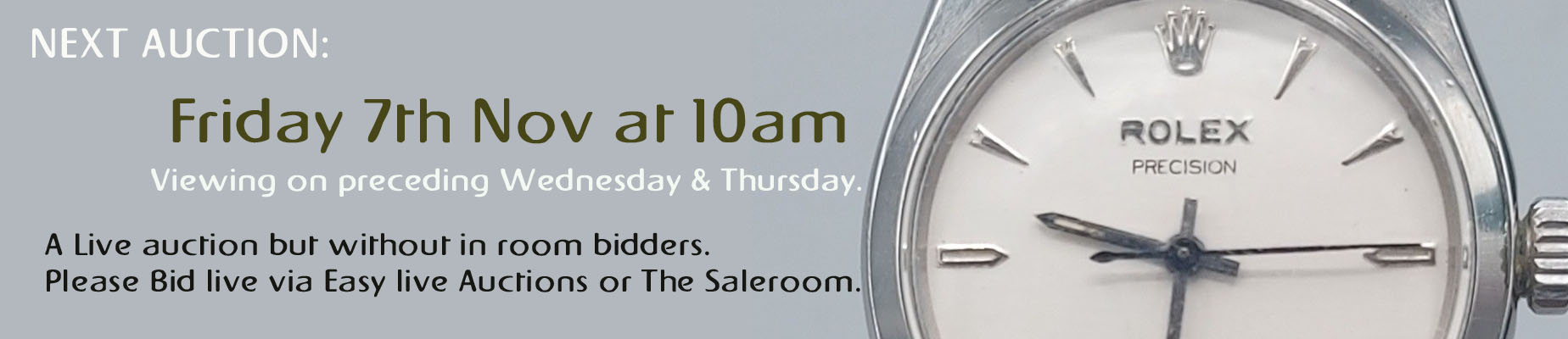 Silver, Jewellery and Watches are currently selling well. Do you have these languishing in a drawer, unloved? Bring them in or send us images via email for a free valuation, and sell them with us being sure you will achieve the full market price, with bidders from all over the UK and abroad placing bids.