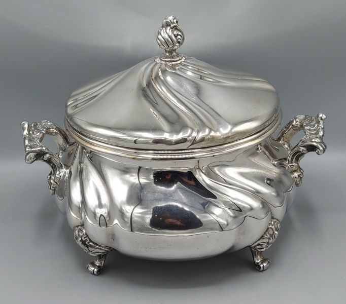 Schnauffer, Dresden, an 800 silver covered tureen the cover with finial and with shaped handles and scroll feet, 72ozs Hammer: £1550