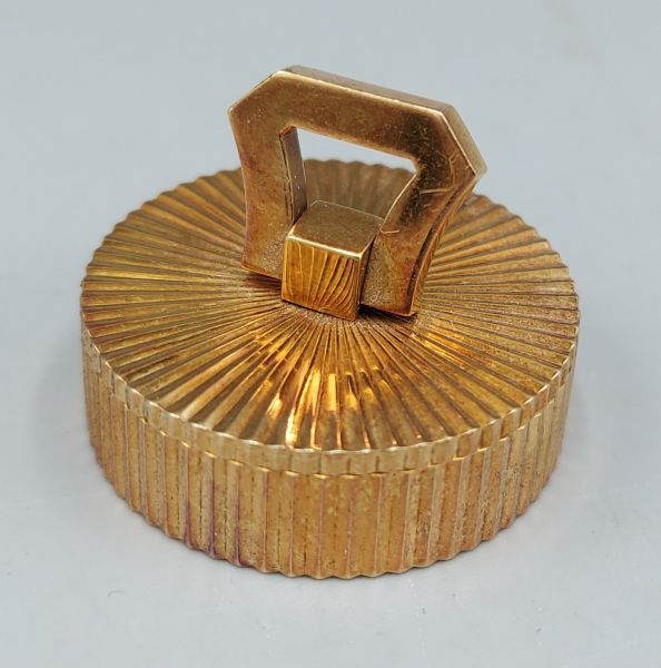 An 18ct gold pill box by Cartier Paris with leather case, 29.2 gms. Hammer £2,300